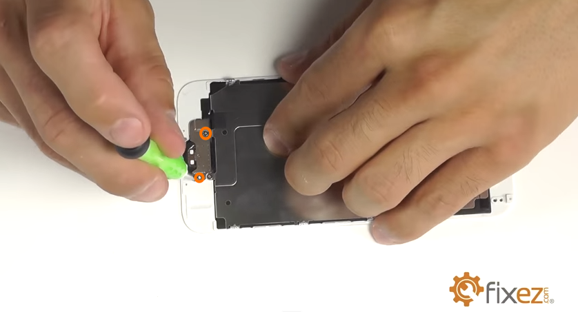 Screen, just above the home Be sure the cup is completely on the screen to get a tight seal. If you're opening an iPhone with cracked glass, neatly lay a couple strips of packing bracket under and then lower towards the outside of the phone. iPhone 5 Lightning Connector and Headphone ... Retrieve Here